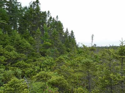 Sign 3 - Upland island (still green) - A raised section just before we left the wooded areas for the peatland. A lot of this area was logged prior to the 1940s.