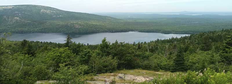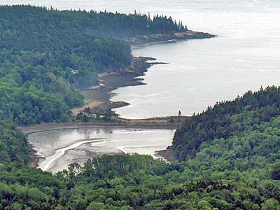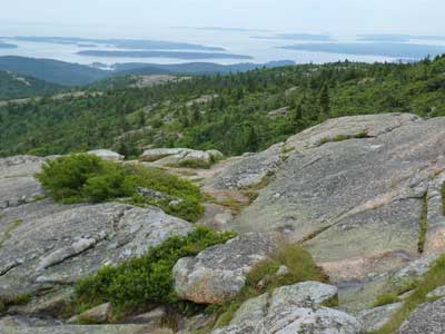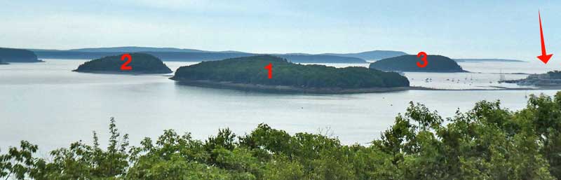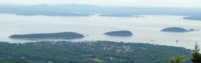 Overlooking Frenchman Bay. The bay extends seven miles between here and the Schoodic Peninsula. French frigates used to hide behind these islands to prey on English warships.