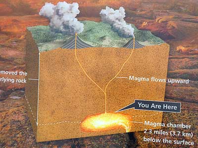 Cadillac Mountain formed millions of years ago when a very hot liquid cooled deep below the Earth's surface. Trapped in a magma chamber more than two miles deep, the liquid crystallized into pink granite. Eventually erosions and glaciers removed the softer, overlying rock, revealing the harder, more resistant granite.