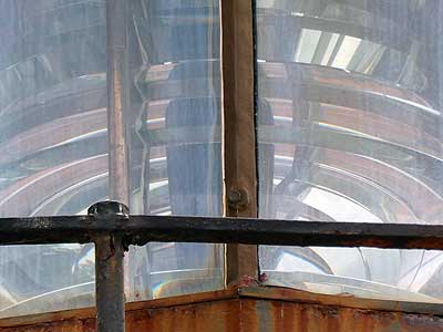 The original lens installed in the lantern room in 1858 was a 5th order Fresnel lens. It was a solid or fixed red light. In 1902, it was upgraded to the larger 4th order lens where the red lights occults (darkens) every four seconds.