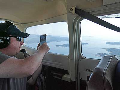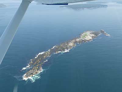 Sutton Island and Bear Island (red arrow) ... Flying over Sutton Island