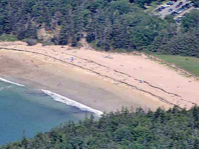 Sand Beach, behind Great Head peninsula. Composed of shell fragments, it is one of the few sandy beaches in the area.