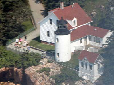 Bear Island might have originally been named Bare Island due to a lack of trees. It is one of the Cranberry Isles. The lighthouse was built in 1839, serving the entrances of Northeast and Southwest harbors. The lighthouse was severely damaged by a fire in 1852 but rebuilt the following year. There was even an aerial tramway that could haul supplies from the wharf to the top of the island. After 1981, the deteriorated light was deactivated and replaced by two lighted bell buoys anchored offshore. It became owned by the National Park Service in 1987.