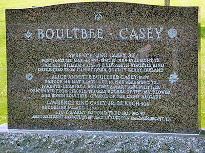 his wife Alice Boultbee Casey (1902 - 1986, with a descendant being a Pilgrim on the Mayflower)