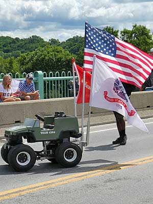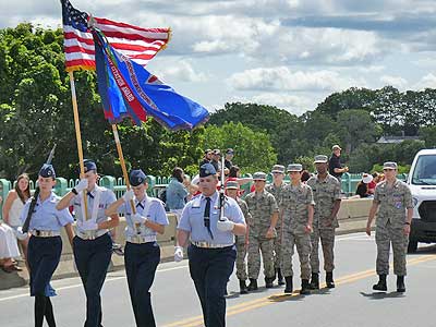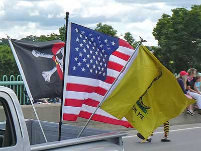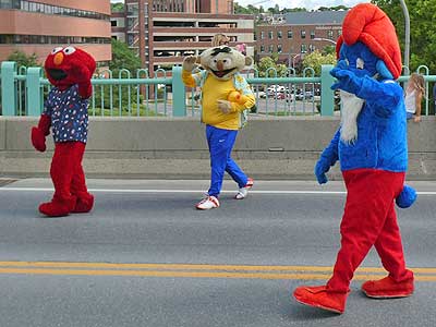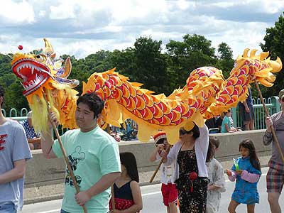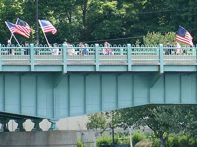 We noticed a parade starting on the bridge and headed quickly over.