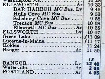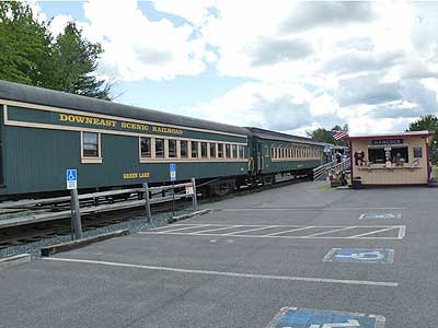 The Downeast Scenic Railroad is a heritage railway in Hancock (near Ellsworth) that operates over the historic Calais Branch, which was once part of the Maine Central Railroad and ran 127 miles, connecting Brewer (near Bangor) to Calais. Its passenger service operated from 1898 to 1957. It provides a 12-mile roundtrip excursion (around 90 minutes) from Washington Junction to Ellsworth Falls. Plans are to eventually extend the line to Green Lake. The crew consists entirely of volunteers.