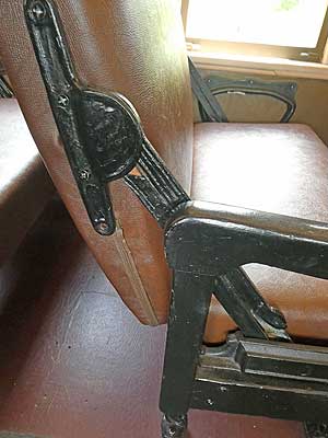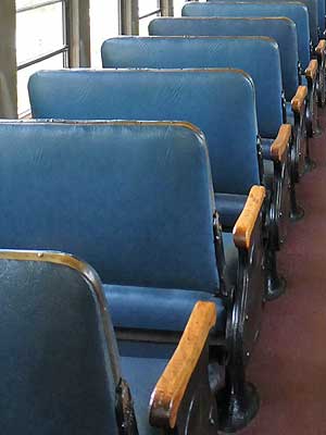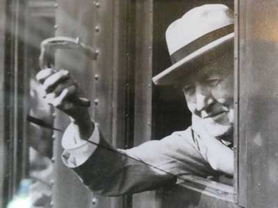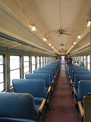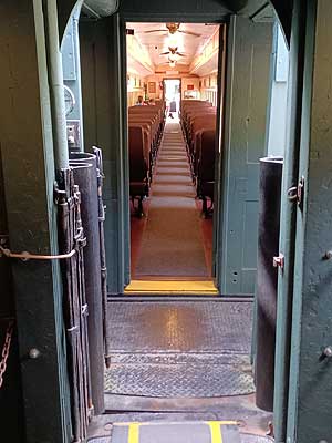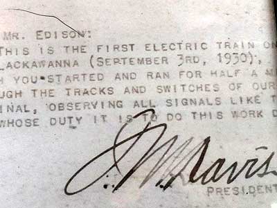In 1930, it was converted into a trailer car as part of a multiple-unit (MU) that ran on electricity and was renumbered #2315. A MU differs from a traditional train in that onboard motors are spread among several of the cars as opposed to being pulled or pushed by a single locomotive. It's essentially a self-propelled train set. This provides better acceleration and braking. The train can also be driven in either direction without having to move a locomotive around. It's better for short-haul passenger service, although it can be noisier and have more vibrations due to underfloor machinery. This MU made its first run with Thomas Edison at the controls for the first mile, since this was one of the first trains using Edison Electric Company direct current (DC) propulsion.