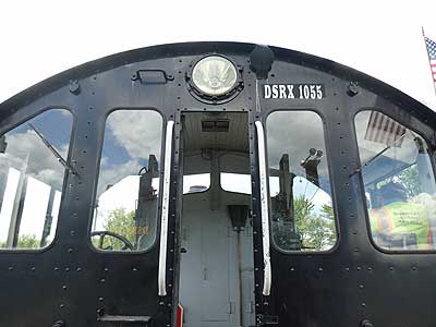 Diesel locomotive #1055 was built in 1950 and was used in Portland (Maine) for switching freight cars in the local rail yards and warehouses. In 1981, it was purchased by the Conway Scenic Railroad (New Hampshire) and used on some of their passenger excursion trains. In 2010, they acquired two larger locomotives and sold the #1055 to the Downeast Scenic.