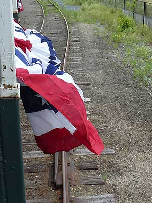 The W sign means to blow the whistle (2 long, 1 short, 1 long). This was also done at each intersection. ... Approaching the old Ellsworth train station