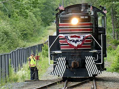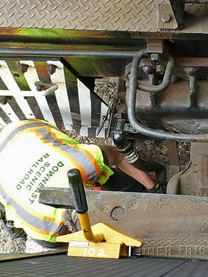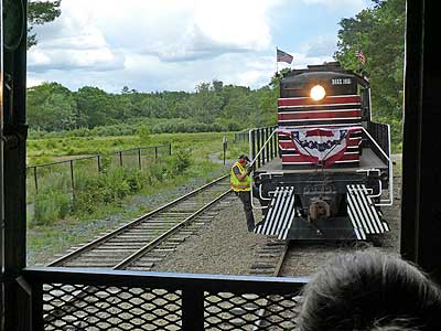 Reattaching to the train at the baggage car. The Union River passenger coach #123 at the other end would now serve as the front of the train.