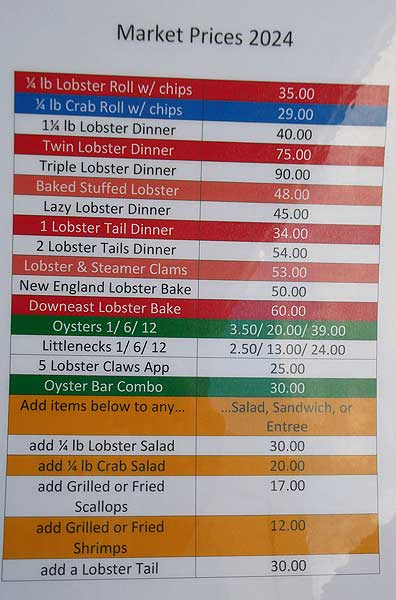 All lobster prices were based on "Market Price" and simply written as MKT on the menu. Although at most other restaurants, we were never given any information in advance as to what those prices actually were. It often was just a surprise with the check.