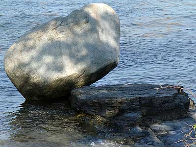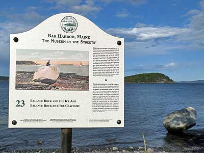 #23 - Known as Balance Rock, this large boulder is the result of the last ice age more than 10,000 years ago. It has a completely different composition than the surrounding rocks because it comes from some 40 miles northwest of here and was carried by glacier ice more than a mile thick. This is also why all the surrounding mountains and hills are smooth and round instead of pointed.