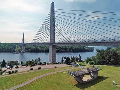 The Waldo-Hancock Bridge, built in 1931, was the first bridge to use pre-stressed wire rope strand cables and was extremely modern for its time. It was claimed to be the Most Beautiful Steel Bridge and its span was more than twice as long as any other bridge in Maine. In 2003 during a major overhaul, it was discovered that the cables were too corroded to save and the bridge would have to be replaced. In 2006, the Penobscot Narrows Bridge became the first cable-stay bridge in Maine. It includes the tallest public bridge observatory in the world.