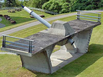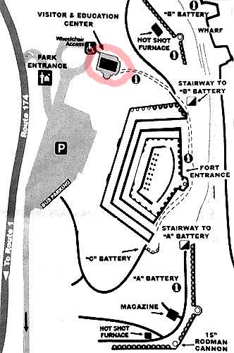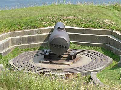 The fort was under construction for over 20 years. Plans and parts constantly had to be changed and rebuilt. Battery B was built in 1845 for fifteen 32-pounder cannons... which never arrived. There were still no cannons here when the Civil War began in 1861. When the cannons finally did arrive, they were 10-inch Rodmans. Crews spent months rebuilding the emplacements. The 15-inch Rodman remaining here was one of the two saved from the WWII salvage effort.