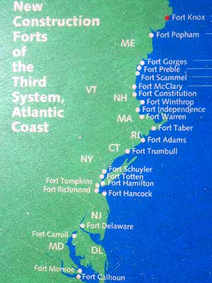 Fort Knox, named after Revolutionary War Major General Henry Knox, rose on the banks of the Penobscot River over a 25 year period beginning in 1844. It was part of a federal system of forts (called the Third System, since there had been two more before it) to project the nation's major rivers and harbors. A total of some 40 new forts were built.