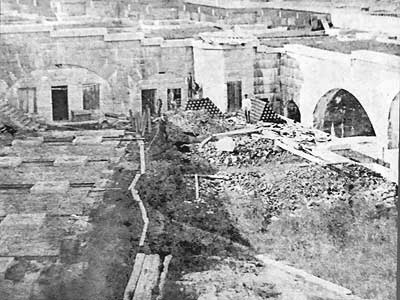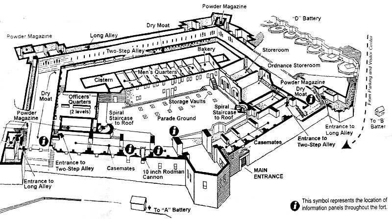 The waterfront batteries were the first areas completed in the 1840s but they didn't receive any cannons. It wasn't until the 1863 that new, larger cannons (10-inch Rodmans) were to be brought in. This meant that workers and stone cutters had to dismantle and rebuild the existing gun emplacements to accommodate them.