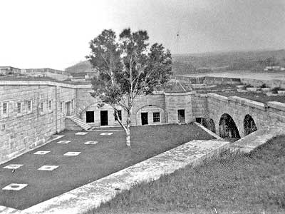 The parade ground during construction, circa 1869. Many of the fort's interior rooms were not completed. .... A postcard of the fort in 1930