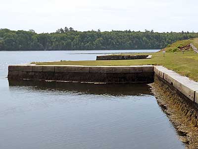 The fort is known for its beautiful granite. Years were spent quarrying, moving, cutting, finishing and placing it. The wharf and batteries were built from local granite from Mosquito Mountain. When the foundation and wall of the main structure began in 1854, the stone was obtained from nearby Mt. Waldo. Barges would bring the large blocks to the fort's wharf.