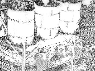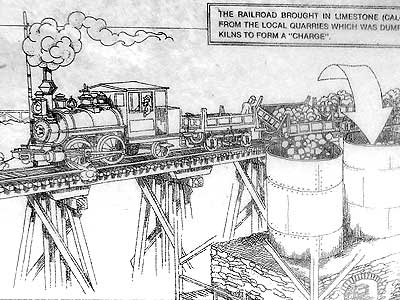 Unloading the limestone directly from train cars ... From the barrels and into the furnace...