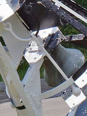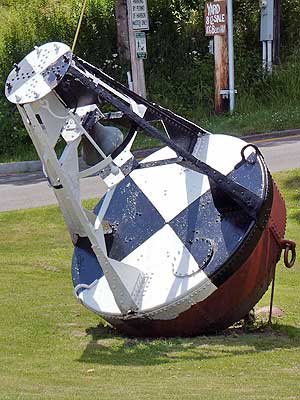 A large bell buoy ... Note how the clapper is outside the bell (which is fixed and doesn't swing)