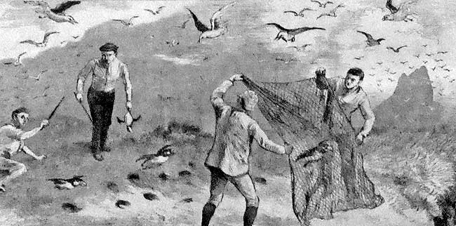 Images from an issue of Harpers Weekly in 1886, depicting how puffins and other seabirds were consider game.