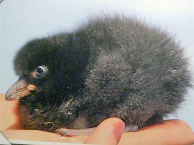 Puffins can live 30 or more years. They usually return to the same burrow with the same mate year after year. In April, they lay one, large egg deep within a rock or soil burrow. The parents take turns incubating the egg for about 6 weeks. It takes the chick (or puffling) about four days to break out of the shell. Newly hatched pufflings are fed about five times per day. Older chicks may get as many as 21 meals per day.