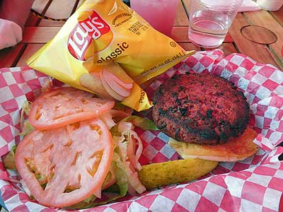 I got the veggie burger ... while Sean got the Lazy Lobster dinner where the lobster was all cut up for you and sauteed in butter. Served with corn, coleslaw and blueberry cornbread