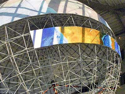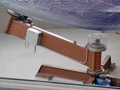 The massive globe rests on a large base. Motors move it in its two directions. Instead of spinning, it moves in small steps to a specified position.