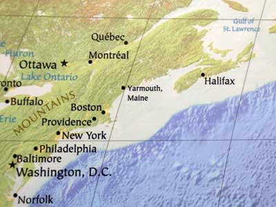 North and Central America slowly pass by ... eventually arriving at Maine.