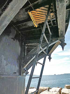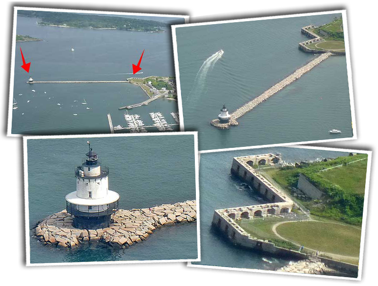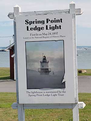 The Spring Point Ledge is a reef that extends from Fort Preble out to the westerly side of the main shipping channel into Portland Harbor. It was the cause of numerous shipwrecks. Eventually it was agreed that a warning beacon was necessary, and after five years of delay, the construction of the Spring Point Ledge Lighthouse finally began in 1896.