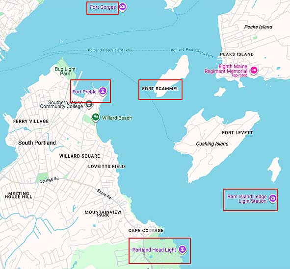 Downtown Portland ... Located some ways out in the water was Fort Gorges on Hog Island Ledge.