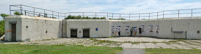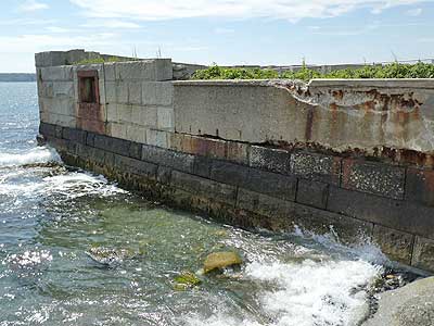 Battery Blair was the largest of six gun batteries built at Fort Williams. Named for Francis Preston Blair Jr(1821 - 1875) , a veteran of the Mexican and Civil wars, the battery was manned during WWI and the early years of WWII. Hidden from view at sea behind a large concrete and earth berm, it contained two 12-inch guns mounted on disappearing carriages. Designed to protect Portland Harbor from attacks by enemy battleships, these guns could fire a 1,000 pound armor-piercing shell a distance of 8 miles.
