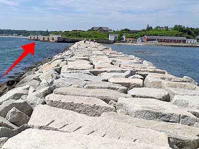 The 900-foot breakwater was built in 1951, using fifty thousand tons of granite blocks, each weighing between three and five tons.