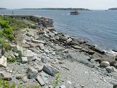 Across the way on House Island was Fort Scammel. Again Thomas Lincoln Casey oversaw its construction in 1808. It was later upgraded with larger cannons and an extensive network of underground concrete tunnels. By 1876, however, the Third System Coastal fortifications were deemed obsolete and defunded.