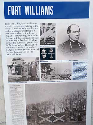 From the 1750s, Portland Harbor was of economic importance as the closest US harbor to Europe. As part of upgrading harbor defenses in 1873, construction began at Portland Head to replace the outdated granite forts. In 1899, this location was selected for For Williams, in honor of Brevet Major General Seth Williams from Augusta, Maine. Ultimately there ended up being six modern artillery batteries with two guns each. The fort was manned during the Spanish-American War and both World Wars.