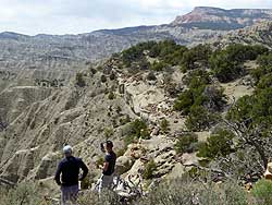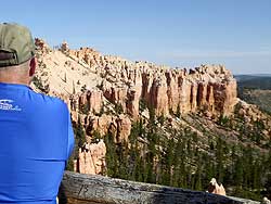 Day 4 - When we arrive in Capitol Reef, we first take a walk along the Grand Wash. After a visit to the historic Behunin cabin, we each grab a personal pie at the Gifford House. My favorite was always the strawberry rhubarb. One can often see deer wandering in the old orchards. We make quick stops at the old schoolhouse, some more petroglyphs and Panorama Point. Then we take Highway 12 over Boulder Mountain and across the narrow hog's back (overlooking Calf Creek Canyon), grabbing lunch along the way. Just outside the town of Escalante is the Hole-in-the-Rock Heritage Center which tells of some harrowing pioneer adventures. We stop briefly at Powell Point for views of the Grand Staircase (a series of wide plateaus). We briefly pop into Bryce Canyon National Park for some previews of tomorrow. We spend the night in the historic Ruby's Inn in Bryce Canyon City.