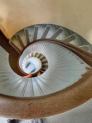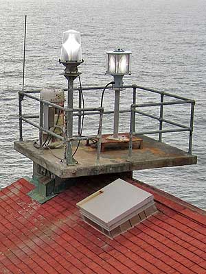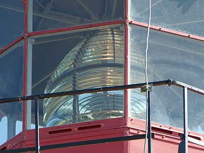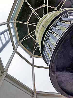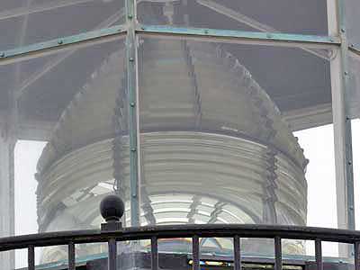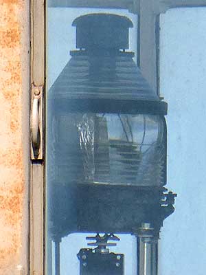 We could climb all the way up into the empty lantern room of the south tower but only up to walkway below the lantern room in the north tower, where a small 6th order lens still serves as an aid to private navigation.