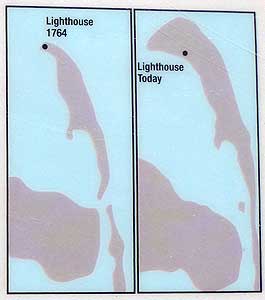 The low-lying spit of Sandy Hook has grown thanks to the current that drives sand to the north. The lighthouse was originally 500 feet from the tip. Today it is 1.5 miles away and landlocked.