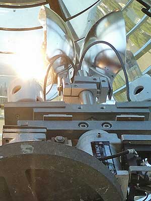Overpowered by the new lens in the south tower, the light in the north tower was discontinued, but it was kept in place in case the electricity to the south tower ever failed. The new light was so bright, however, that the locals complained they could not sleep, their chickens wouldn’t lay eggs, and even their cows refused to give milk. It also messed with migrating birds. So the back three panels of the lantern room were darkened. The keepers had to wear special welder's goggles when working near the light.