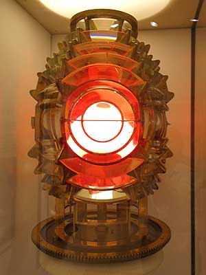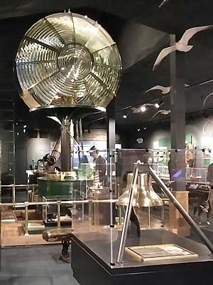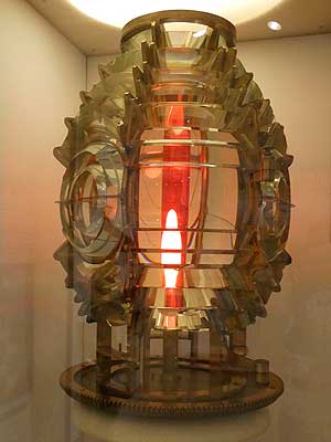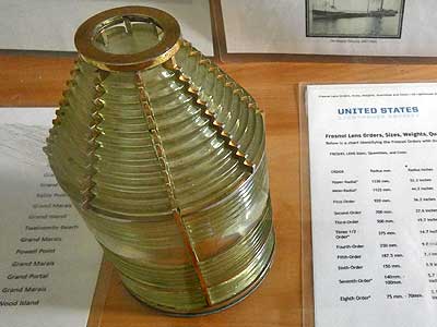 A light-emitting diode lantern was installed in 2011, with a range of 17 miles (15 nautical miles). ... In the museum is a massive, 9-foot diameter, 3,500 pound, 2nd order Fresnel lens as well as the bell recovered in 1995 from the SS Edmund Fitzgerald shipwreck in 1975.