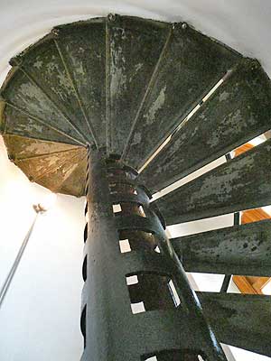 The stairs up ... The museum contained the 4th order lens used here from 1892 to 1957.