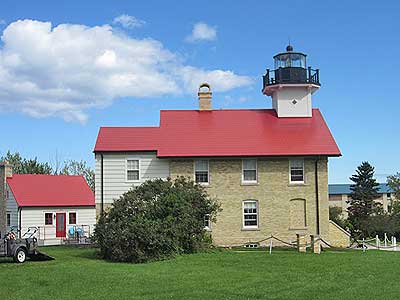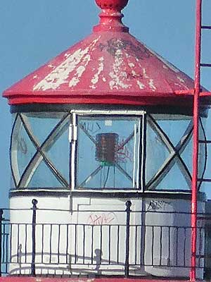 The 56-foot-tall Wisconsin Point light sits along the natural break in the 10-mile long sand bar that stretches between the ports of Duluth and Superior. The Minnesota side of the opening is known as Minnesota Point and the Wisconsin side is called the Wisconsin Point. It was built in 1913 at the outer end of the southern breakwater. A clockwork mechanism, powered by a 75 pound weight, had to be wound every four hours, The original 4th order Fresnel lens manufactured in Paris in 1890 was eventually replaced with aerobeacon.