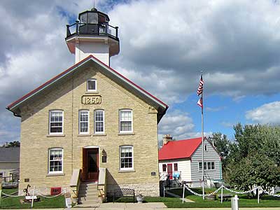 Built in 1849, the first Port Washington Lighthouse was a 32-foot, conical brick tower which housed five lamps set in 14-inch reflectors. It was rebuilt as a rectangular keepers house with a tower on the roof in 1960. In 1888, two harbor piers were completed, and the following year a pyramidal tower was erected on the north pier to guide ships into Port Washington. In 1903, however, it was decided the pier light was enough and the old lighthouse was discontinued.