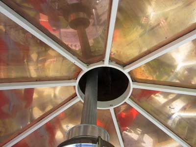 The Raspberry Island lighthouse was built in 1862. Its 5th order, fixed lens was was first lit 1863, in the middle of the Civil War. In 1880, the fuel for the light was changed from lard oil to kerosene. The lens was replaced by an automated, battery-operated light in 1957.