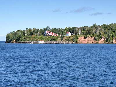 Devils Island is the most northern island in archipelago. The Devils Island Lighthouse became the eighth and final lighthouse to be constructed on the islands. It was first built in 1891 as a 4-story, wooden pyramidal tower with a 4th order lens. A new 85-foot-tall, steel, cylindrical tower was built and received a 3rd order lens in 1901. Unfortunately it was discovered that this design didn't hold up well in wind, so it was modified in 1914. It was automated and de-staffed in 1978. In 1989, the Coast Guard removed the 3rd order lens, replacing it with a modern beacon mounted on the gallery railing. After much protest, the 600-pound lens was eventually returned, even though it remains inactive.
